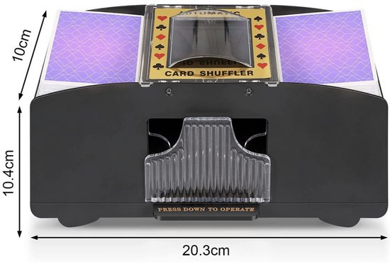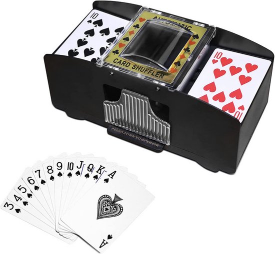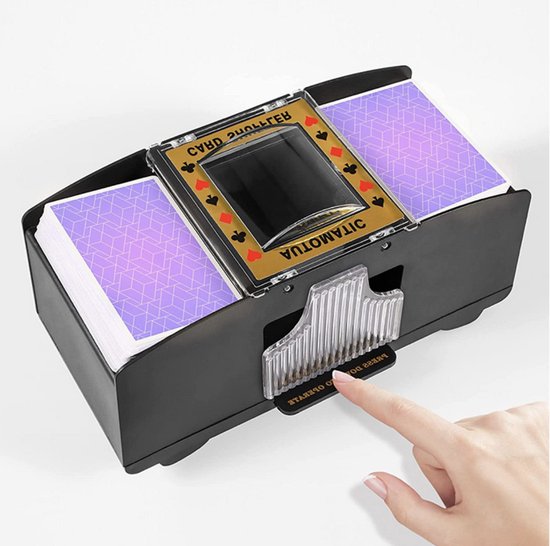Maak elke spelavond eerlijker en soepeler met de LUMORS elektrische kaartschudmachine. Met één druk op de knop worden je kaarten gelijkmatig en snel geschud, zodat je direct verder kunt spelen zonder handmatig gedoe of twijfel over de shuffle. Deze automatische kaartenschudder is geschikt voor twee decks standaard speelkaarten en ideaal voor poker, blackjack, bridge en andere kaartspellen. Perfect voor thuisgebruik, spelavonden met vrienden of fanatieke spelers die snelheid en consistentie waarderen. Dankzij het stevige ontwerp en de duurzame constructie is de machine geschikt voor regelmatig gebruik. De compacte vorm past eenvoudig op iedere speeltafel en zorgt voor een professionele uitstraling tijdens het spelen. Kies voor gemak, precisie en een eerlijke verdeling van de kaarten met LUMORS. • Automatisch schudden met één druk op de knop • Geschikt voor 2 decks standaard speelkaarten • Zorgt voor eerlijke en gelijkmatige verdeling • Stevig en duurzaam ontwerp voor langdurig gebruik • Ideaal voor poker, blackjack, bridge en spelavonden Technische specificaties Merk: LUMORS Type: Elektrische kaartenschudmachine Geschikt voor: 2 decks speelkaarten Kaartformaat: Standaard en bridgeformaat Voeding: 4x AA Batterijen (niet inbegrepen) Kleur: Zwart Materiaal: Kunststof Gebruik: Thuis, spelavonden, clubs